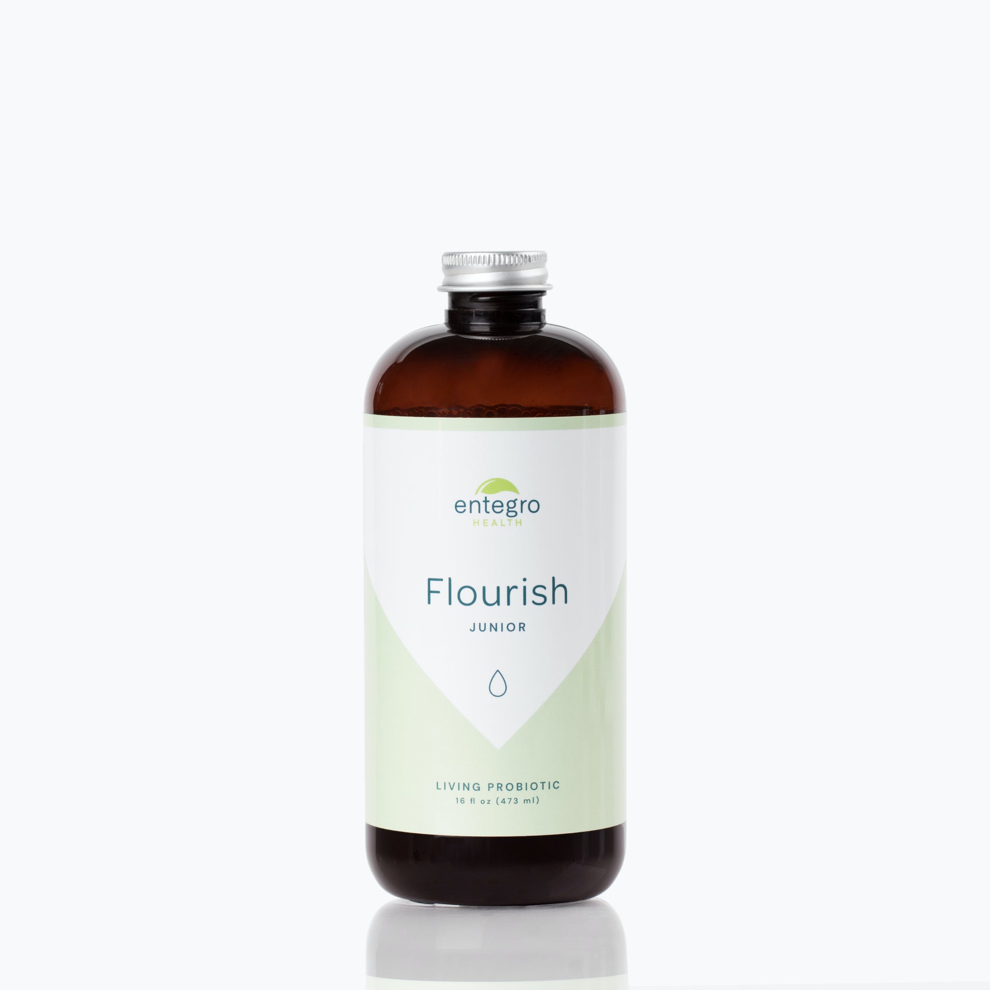 Flourish Junior is a living liquid probiotic crafted through an all-natural fermentation process. All ingredients are organic, non-GMO, and free of major allergens. It is vegan and keto friendly. It has a naturally sweet, apple cider-like taste from its sorghum base.